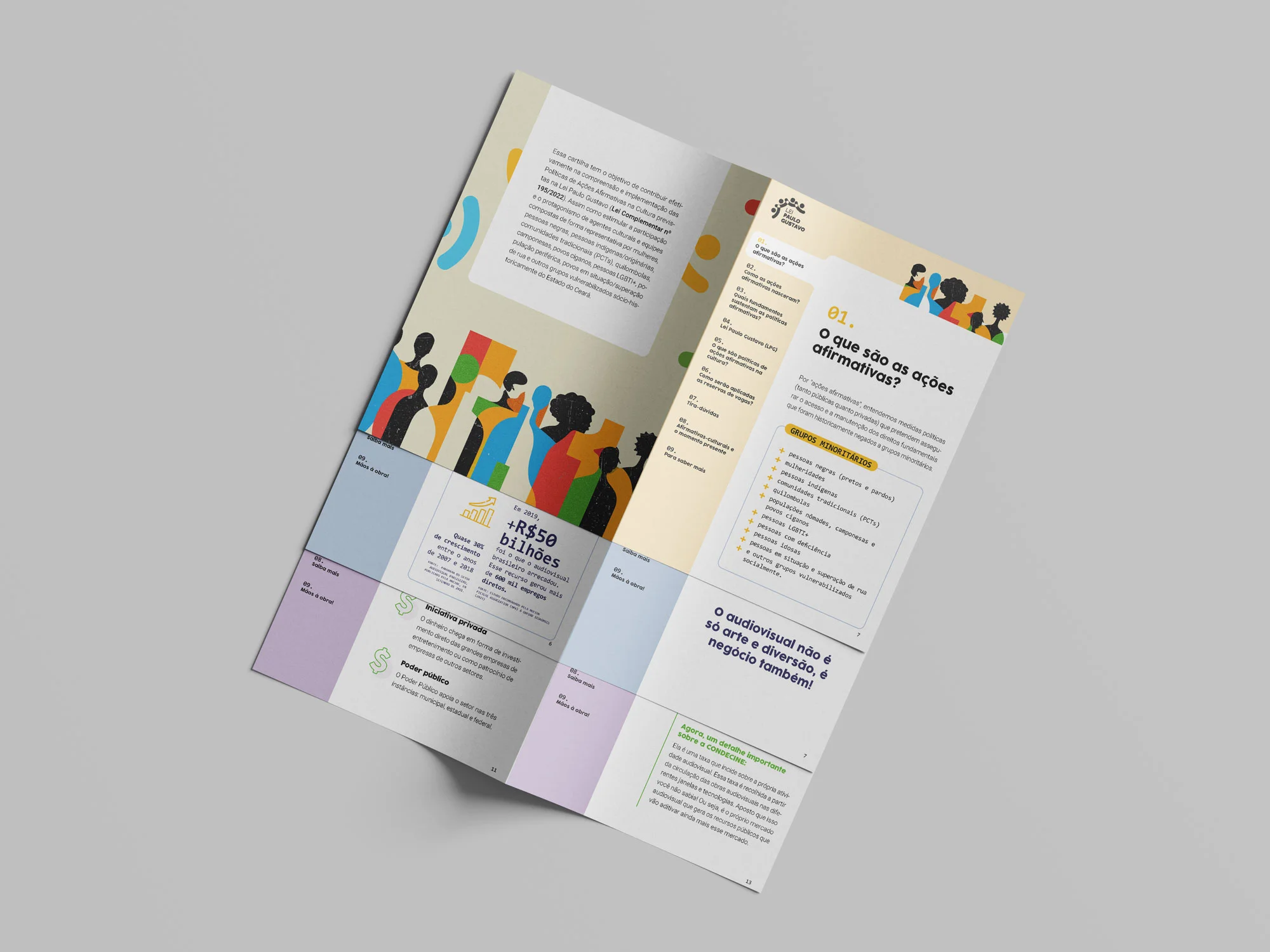 Diagramação de guias práticos sobre a Lei Paulo Gustavos.